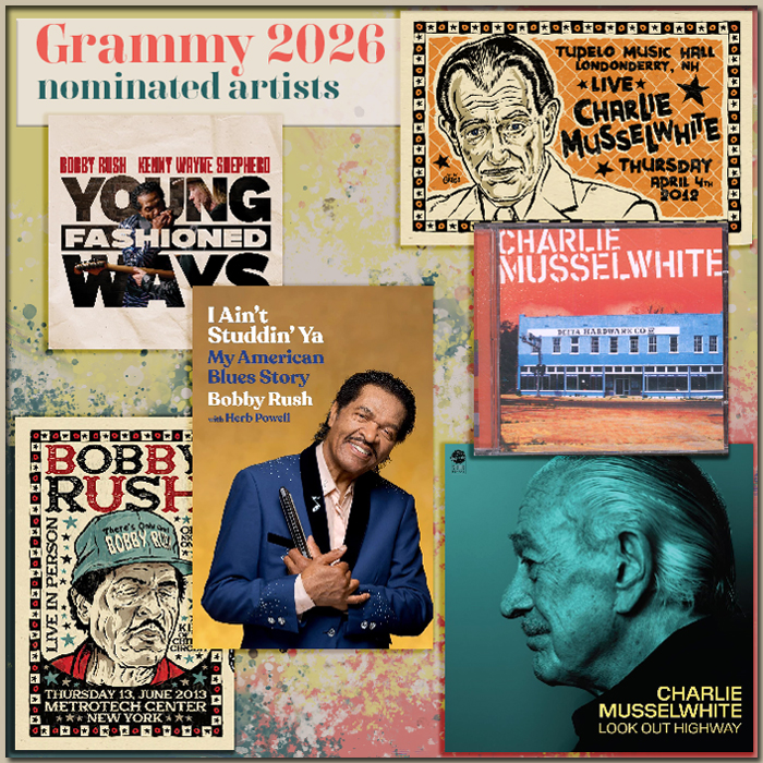 Delta blues legends Bobby Rush and Charlie Musselwhite are among the nominees for 2026 Grammy awards. Rush, a three-time Grammy winner, teams up with Kenny Wayne Shepherd, a five-time Grammy nominee, on Young Fashioned Ways. Charlie Musselwhite, a 2013 Grammy winner is nominated for Look Out Highway. The winner will be announced February 1st.