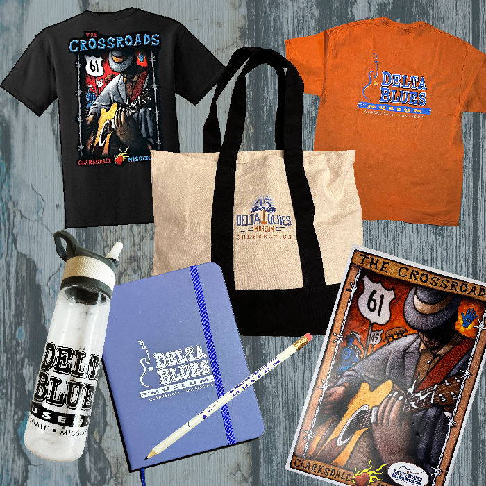 If you can’t visit in person, check out our Gift Shop. We have many new, DBM-logo branded Blues souvenirs to offer, from apparel to accessories, along with to hard-to-find CDs and bios of blues artists. Sales at our Gift Shop help us--and you--keep the spirit of the Delta Blues alive.