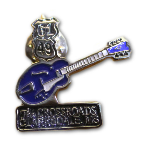 Metal pin marking "The Crossroads” in Clarksdale