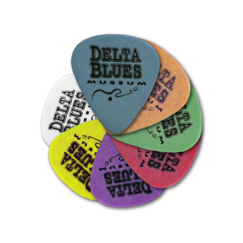 Assortment of 5 guitar picks featuring the Delta Blues Museum Logo.