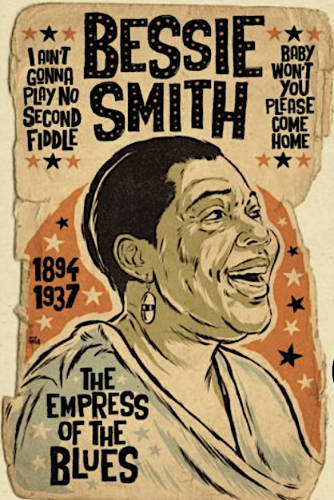Colorful portrait of Bessie Smith, “The Empress of the Blues” by artist Grego Anderson.